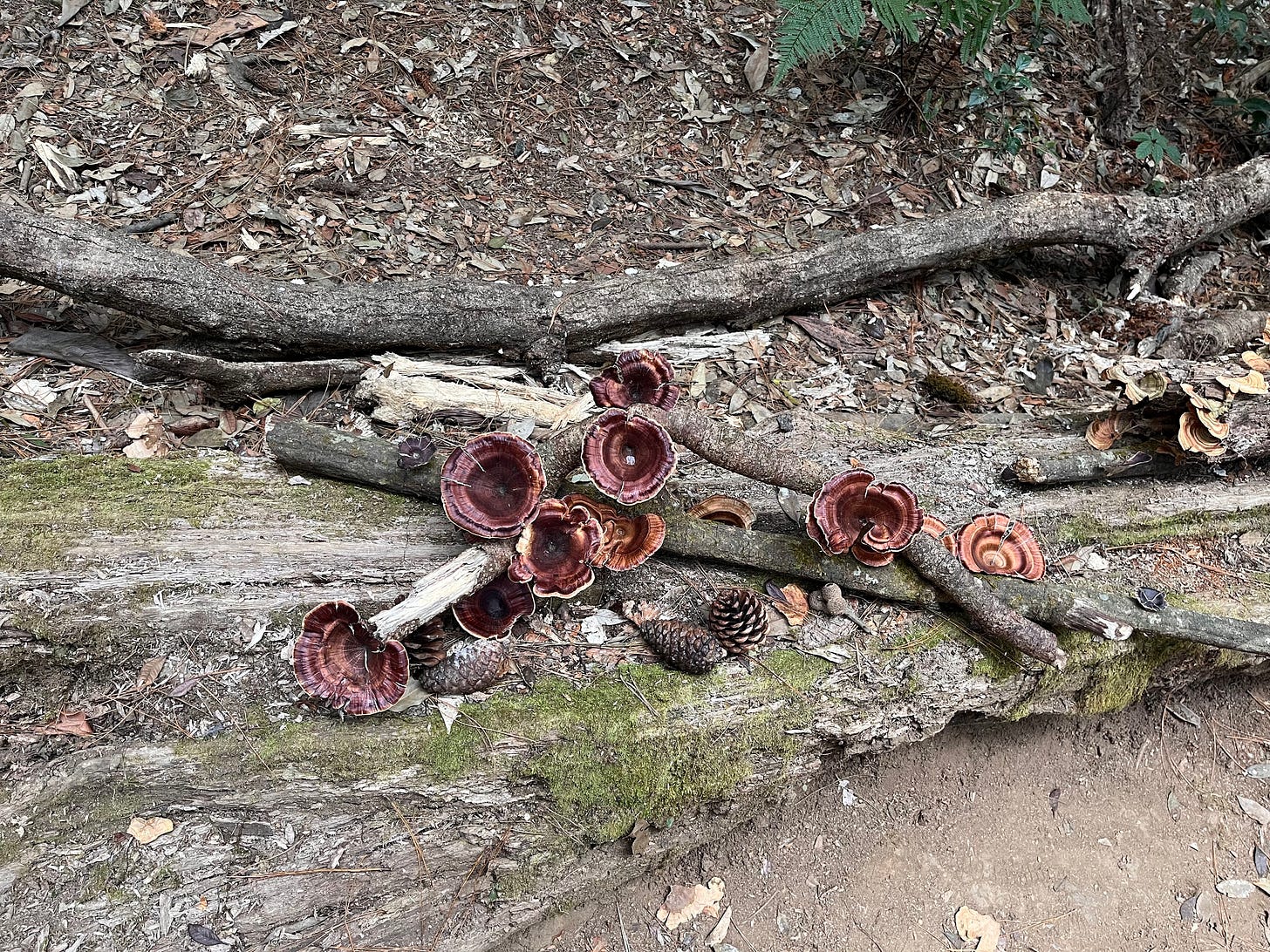 What does any of this have to do with the matrilineal worldview, you may ask? Picture those early women then, as resource managers and collectors of NTFPs (Non-Timber Forest Products) like mushrooms and other wild tubers since time immemorial. Over time, these women studied those wild sources of nutrition with observational curiosity — often dismissed by the colonial vernacular of forestry, as ‘empirical without methodology’. They must have signposted dead and decaying giant conifers along their foraging paths and waited to learn that decimated nutrients from the old giant’s body became the mushroom emergence hotspots. During the same season, new sprouts would emerge across the forest, indicating that mycelium not only exchanges but also distributes throughout the forest floor. They would have, by instinct, understood that mycelium is one body, even if it appears as different nodes shooting up here and there.
